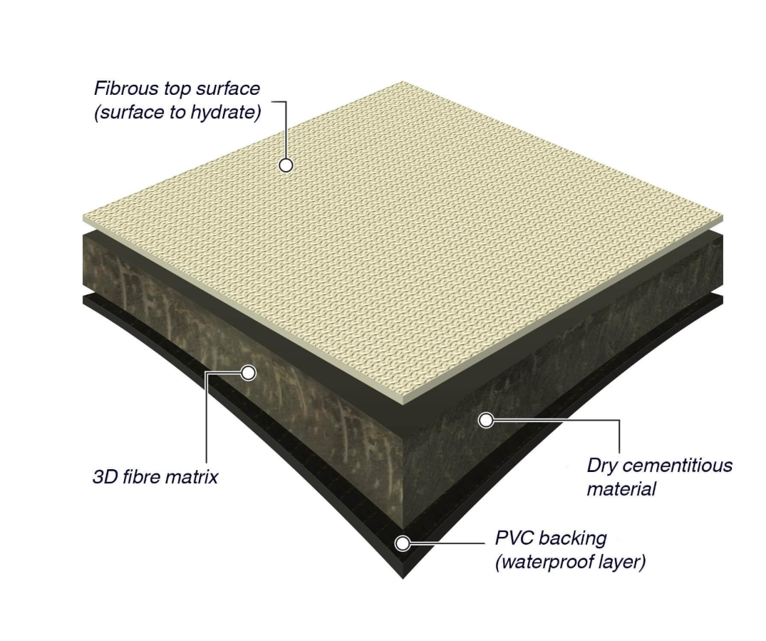 Энэ материал нь синтетик нэхмэл даавуу болон нэмэлт хольц бүхий цемент, 3 чиглэлтэй нэхмэл торон фибер холбоос, PE / HDPE артай.